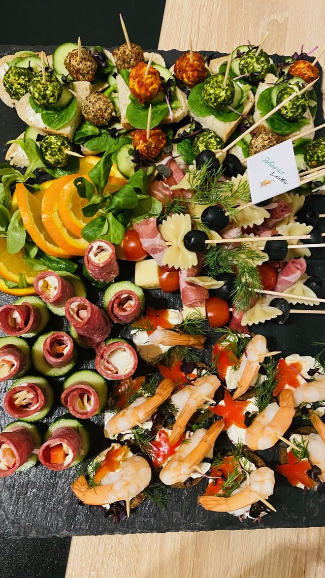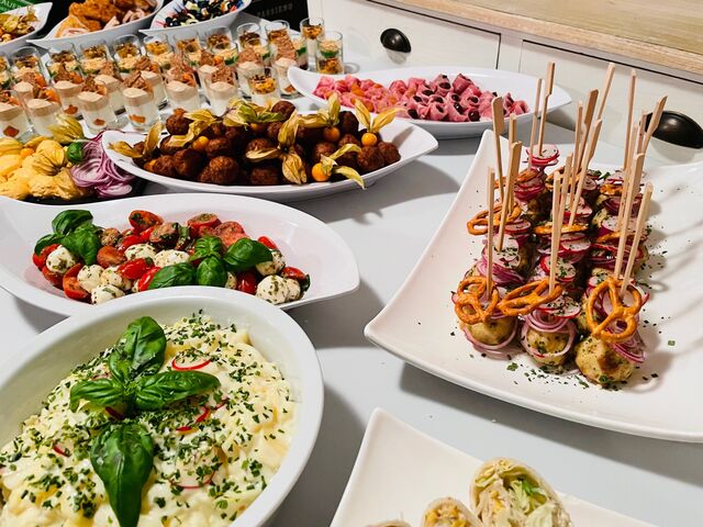 Liebevoll und ansprechend gestaltete Häppchen, die kalt und ohne Besteck verzehrt werden. Ideal zum Empfang, für Präsentationen, Stehpartys oder spontane Feiern. Das Buffet kann über einen längeren Zeitraum verzehrt werden, da dieses nicht warm gehalten werden muss. Hier findet jeder was passendes.